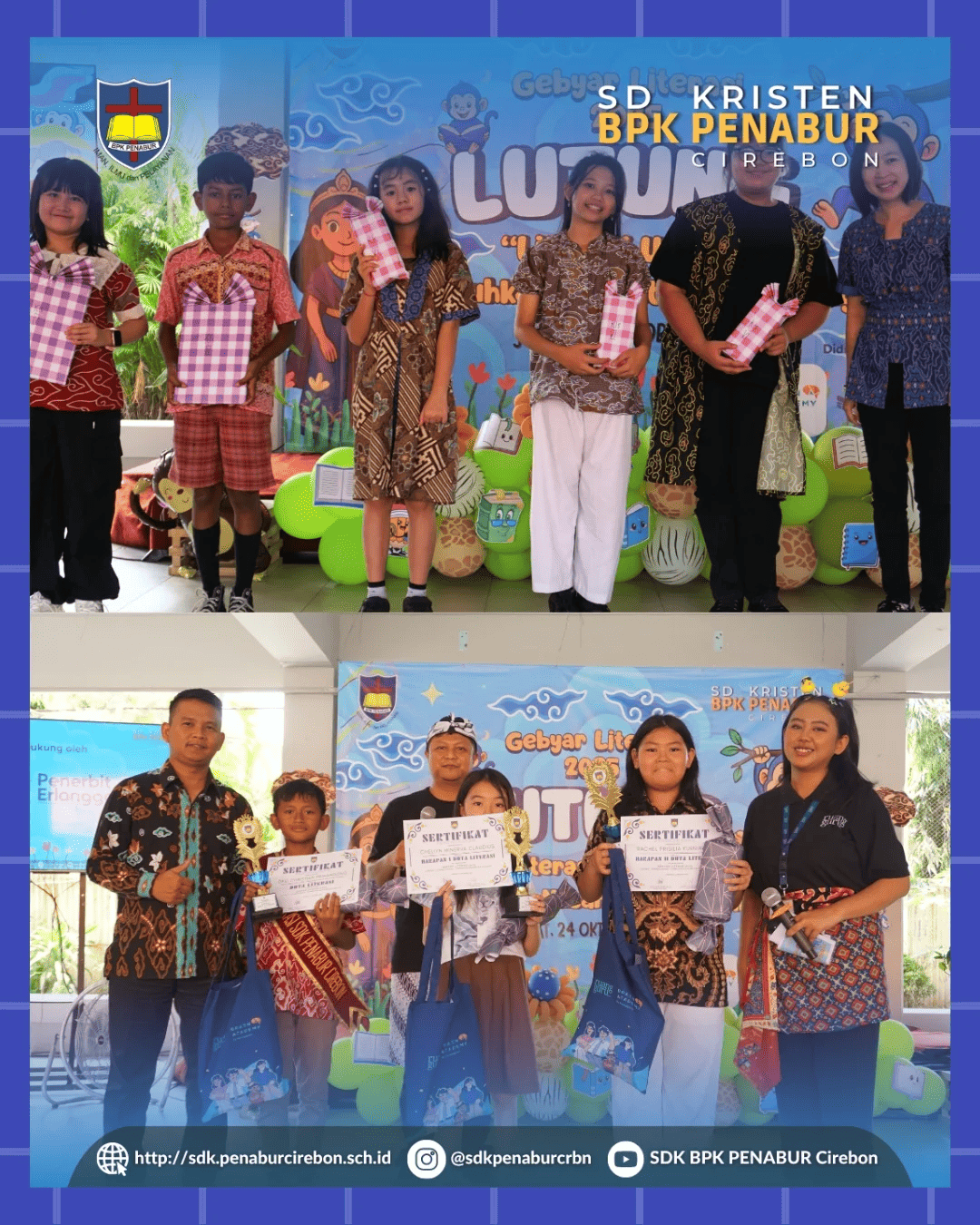 Dengan tema besar LUTUNG – Literasi Unggul, Tumbuhkan Nusantara Gemilang, seluruh warga SDK BPK PENABUR Cirebon bersatu dalam perayaan literasi yang penuh warna, inspirasi, dan kebanggaan. ๐ฎ๐ฉ๐ซ