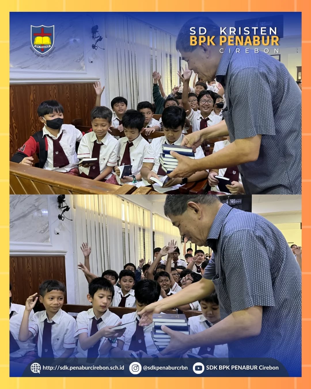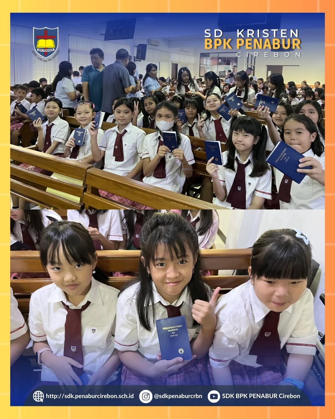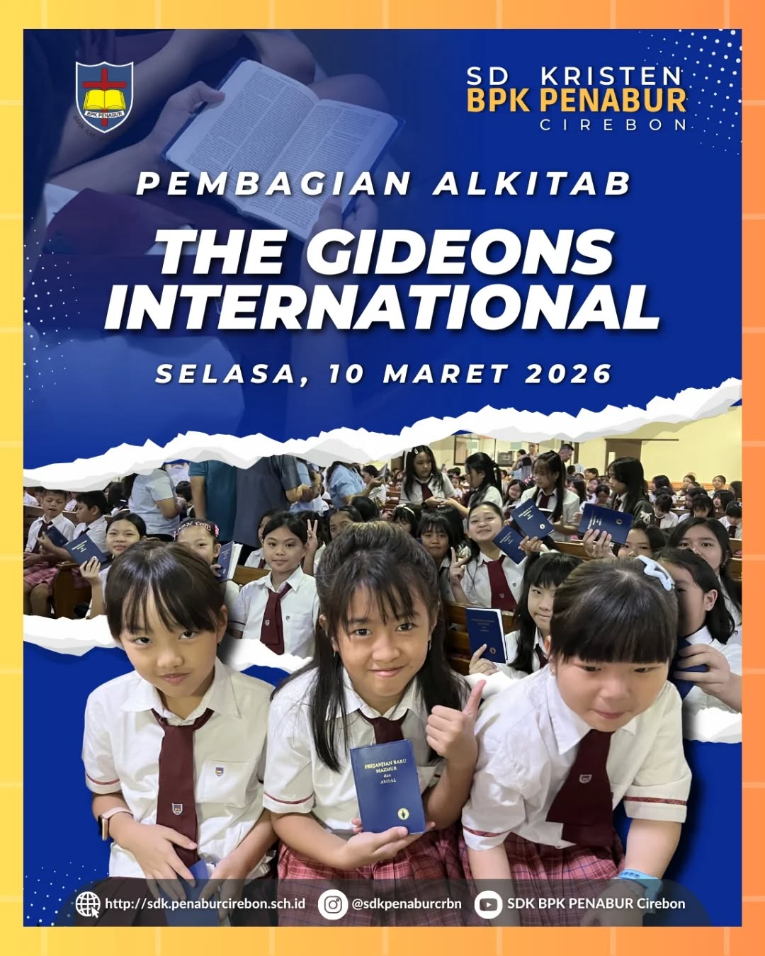 Dengan penuh sukacita, siswa SDK BPK PENABUR Cirebon menerima pembagian Alkitab dari The Gideons International pada Selasa, 10 Maret 2026.